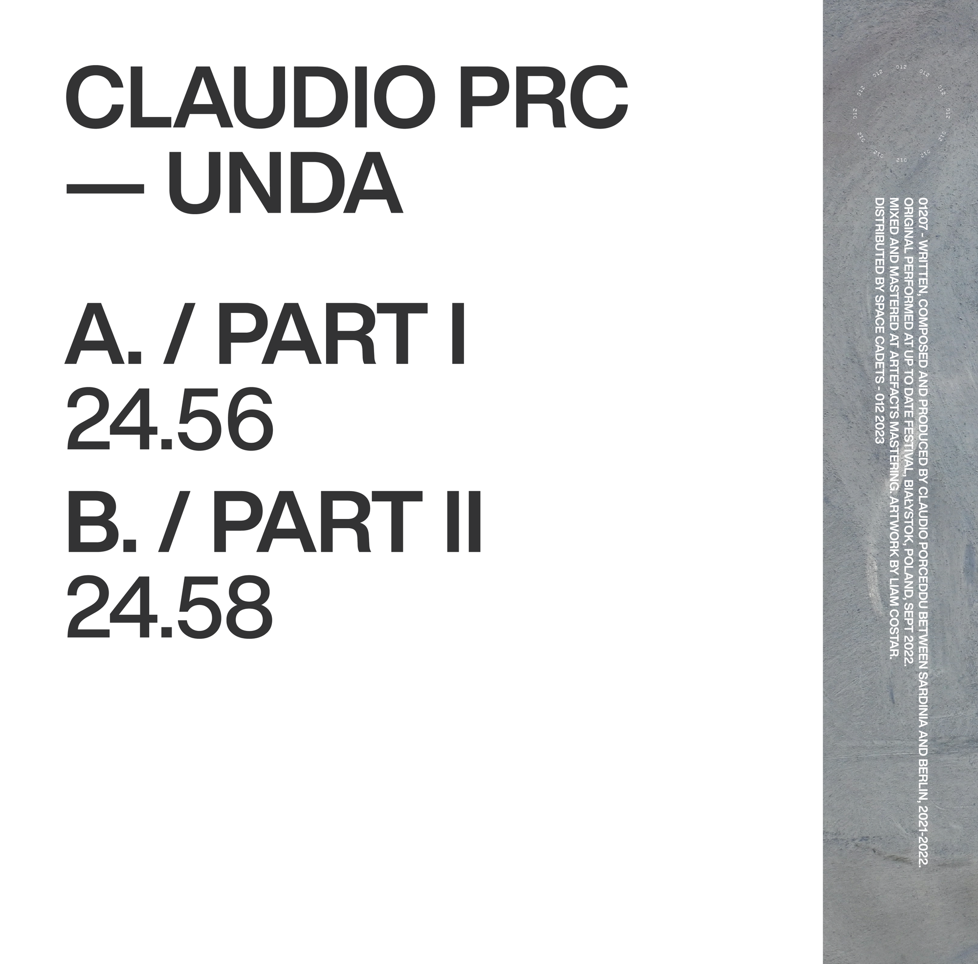 Unda, el nuevo LP de Claudio PRC en su plataforma 012. Disponible en septiembre 2023.